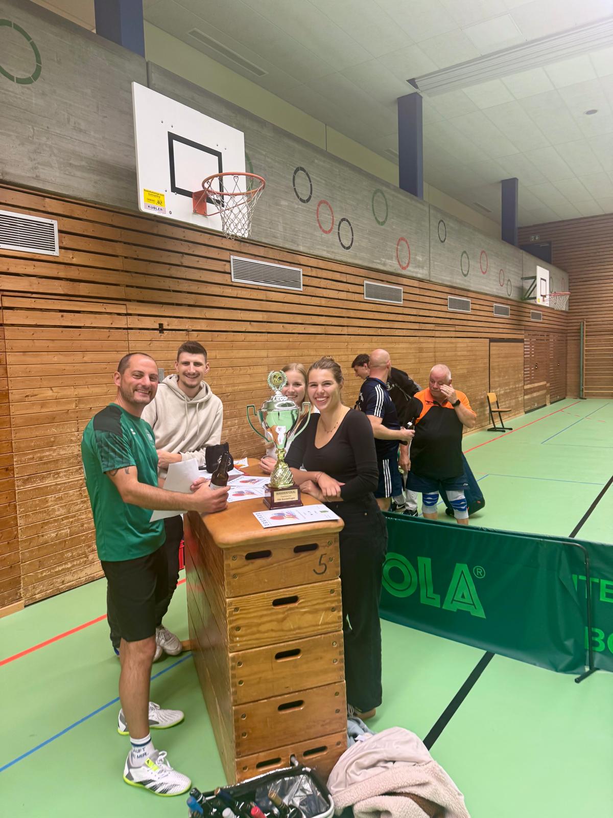 Die gab es aber nicht nur für die Gewinner der Doppel-Wettbewerbe, sondern auch für ein paar „Sonderziele“ rund um das Turnier. Neben den spielerischen Erfolgen hat hier der TSV den Hauptpreis in der Kategorie „größte und stimmungsvollste“ Truppe abgeräumt.