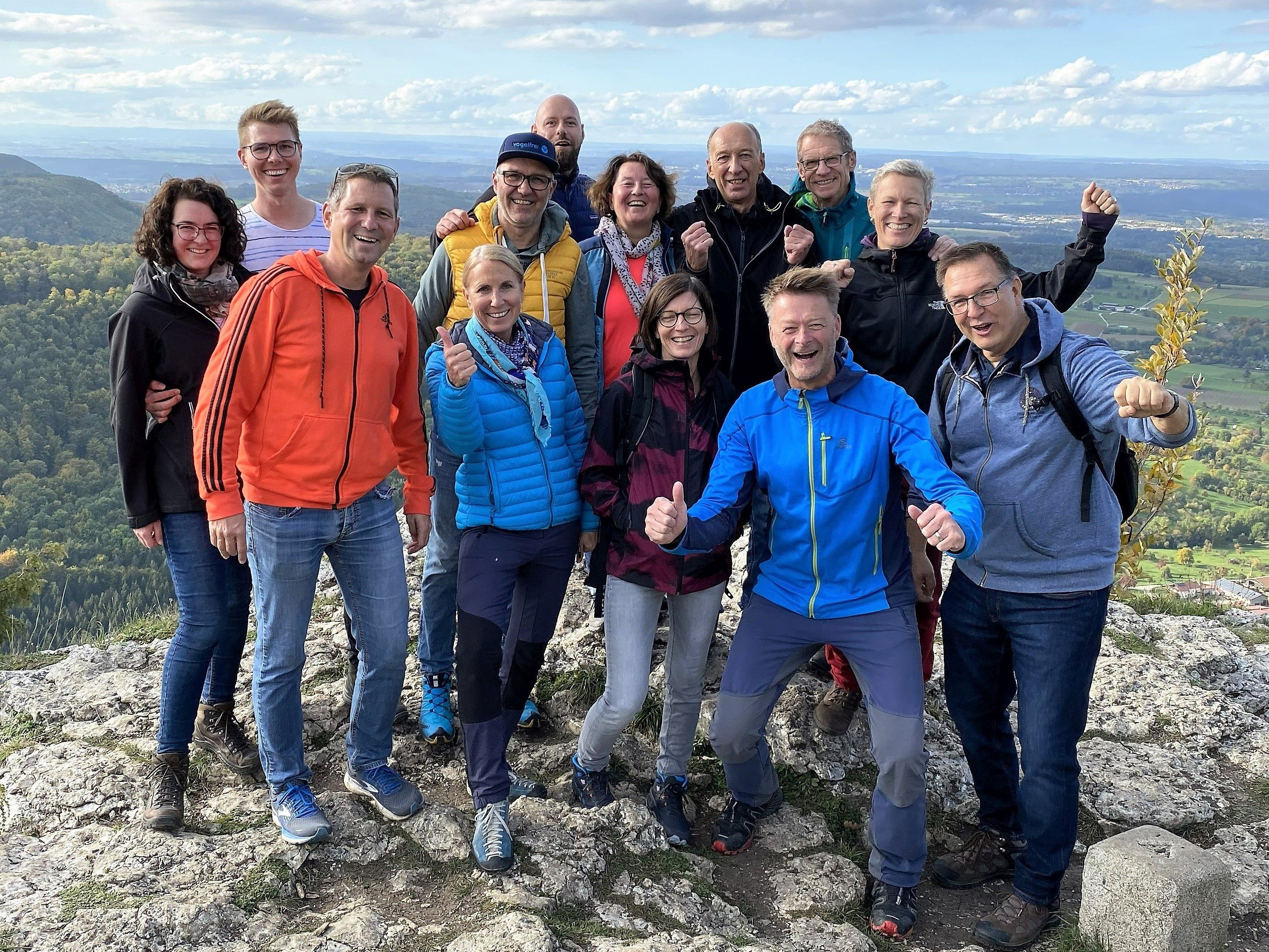 Zum 40-jährigen Jubiläum der Tischtennisabteilung ging es auf Wanderschaft..„hochgehtürmt“ der Premiumwanderweg mit Start am Pfullinger Freibad war das Ziel. Bei sonnigem Herbstwetter gings es zunächst bergauf zum Wackerstein und anschließend weiter zum Schömberg. Die Besteigung des frisch renovierten Turmes mit prächtigem Panoramablick wurde natürlich mitgenommen.