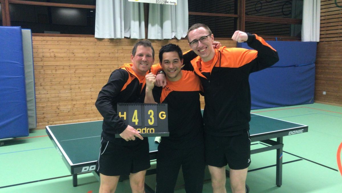 Nach einem knappen aber verdienten 4:3 Sieg gegen den TV Derendingen haben sich die Herren I (v.l. Peter Keppler, Emerson Salzer, Tim Klett) für das Pokalfinale am 17. Mai in Sonnenbühl qualifiziert.